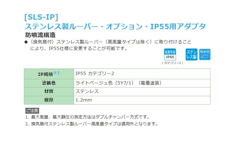 日東工業 SLS-IP15 IP55用アダプタ ステンレス製ルーバー オプション