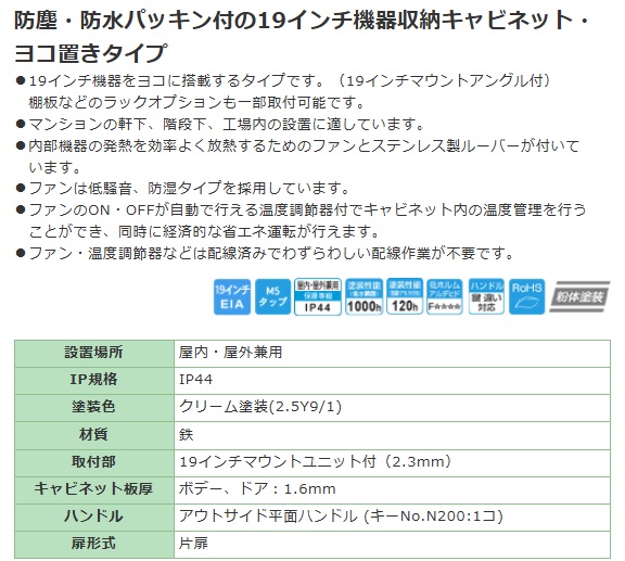 日東工業 THR40-78YC-F HUB収納キャビネット(19インチヨコ置きタイプ)