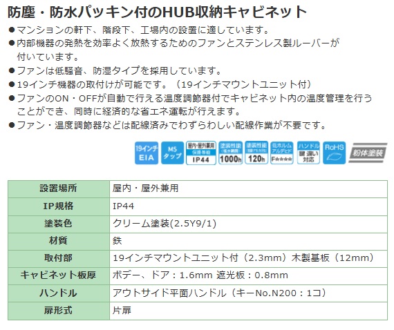 日東工業 THR25-77TC-F HUB収納キャビネット(19インチタテ置きタイプ)