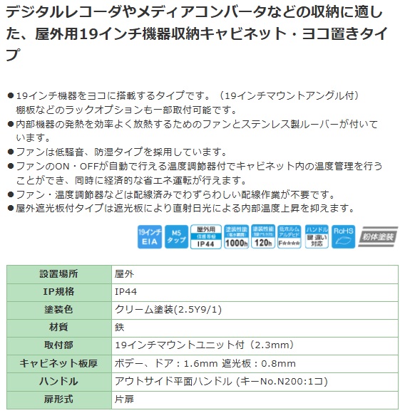 日東工業 THR40-76YDC-F HUB収納キャビネット(19インチヨコ置きタイプ・屋外遮光板付)