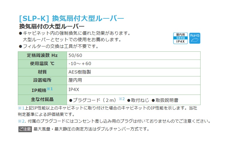 日東工業 SLP-25K-2・SLP-25K-2C AC200V 換気扇付大型ルーバー フィルタ付