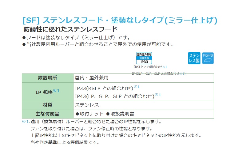 ホーム > 日東工業 熱関連機器 > 換気扇・ルーバー > 日東工業 SF-12S ステンレスフード 塗装なしタイプ(ミラー仕上げ)