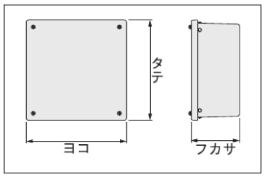 | 仕様 | 屋内・屋外兼用 外形寸法mm:ヨコ210・タテ210・フカサ150 基板寸法mm:ヨコ150・タテ150 有効フカサmm:121 質量kg:1.6 |