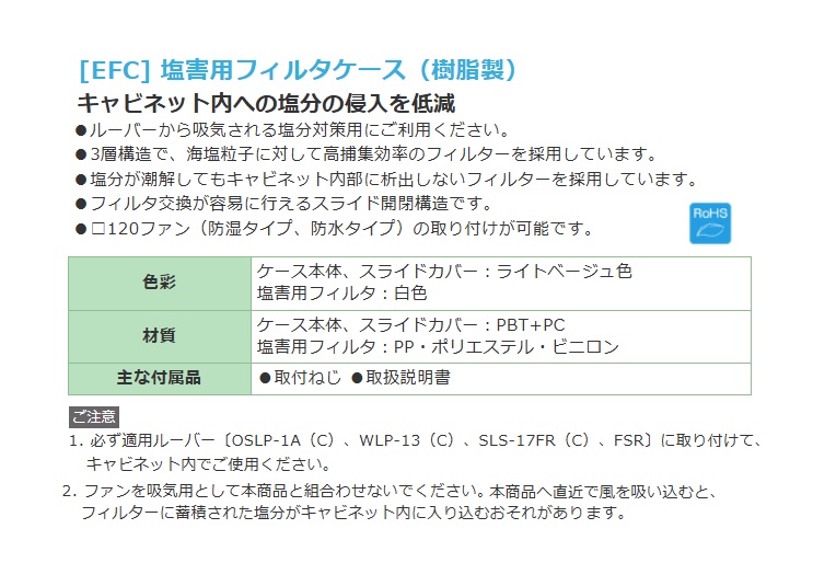 ホーム > 日東工業 熱関連機器 > 換気扇・ルーバー > 日東工業 EFC-12 塩害用フィルタケース(樹脂製)