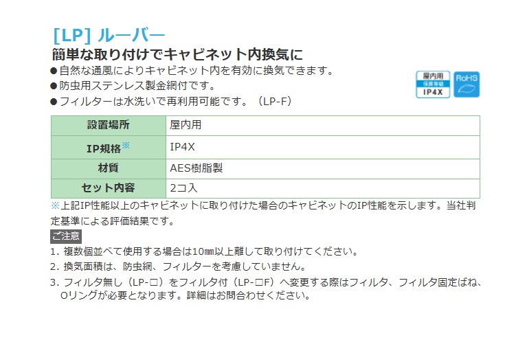 ホーム > 日東工業 熱関連機器 > 換気扇・ルーバー > 日東工業 LP-5F・LP-5FC・LP-5FG ルーバー フィルタ付(2コ入)