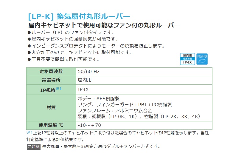 ホーム > 日東工業 熱関連機器 > 換気扇・ルーバー > 日東工業 LP-2K・LP-2KC AC100V 換気扇付丸形ルーバー フィルタ付