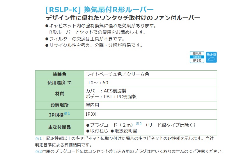 ホーム > 日東工業 熱関連機器 > 換気扇・ルーバー > 日東工業 RSLP-12K-2R・RSLP-12K-2RC AC200V 換気扇付R形ルーバー フィルタ付