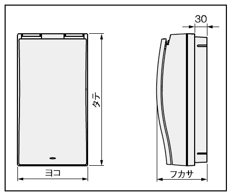 | 仕様 | 露出・半埋込共用型 外形寸法mm:ヨコ280・タテ325・フカサ124 有効フカサmm:62 半埋込寸法mm:ヨコ264・タテ309 木製基板寸法mm:214×160 製品質量kg:1.5 |