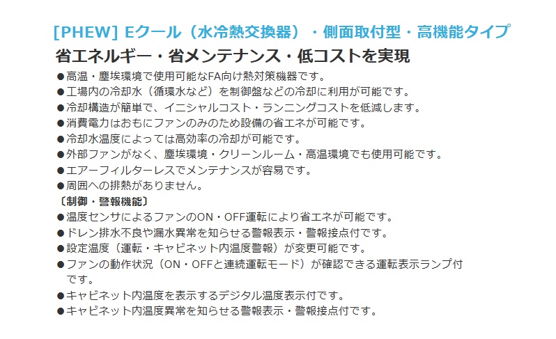 日東 PHEW-150K-2 Eクール(水冷熱交換器)・側面取付型 高機能タイプ