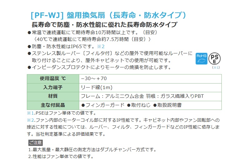日東工業 PF-125WJ 盤用換気扇(長寿命・防水タイプ) 樹脂羽根ファンシリーズ