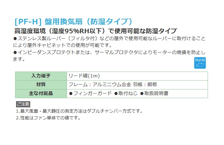 日東工業 PF-155H-2M 盤用換気扇(防湿タイプ) 金属羽根ファンシリーズ