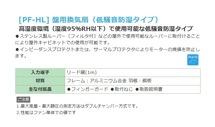日東工業 PF-155HL-M 盤用換気扇(防湿タイプ) 金属羽根ファンシリーズ