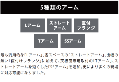 Lアームもストレートアームも約500-900㎜の間でアーム長さを調整
