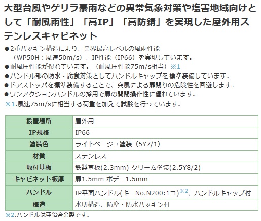 | 仕様 | 水切構造、防塵・防水パッキン付 寸法mm:ヨコ300・タテ400・フカサ200 外形寸法mm:タテ430 鉄製基板寸法mm:ヨコ220・タテ320 有効フカサmm:183 質量kg:10.6 |