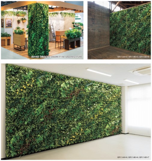 グリーンパネルを壁面で連接して使う演出スタイルです。