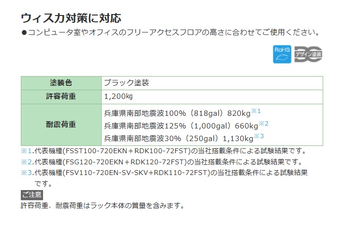 耐震荷重:兵庫県南部地震波100%(818gal)820kg