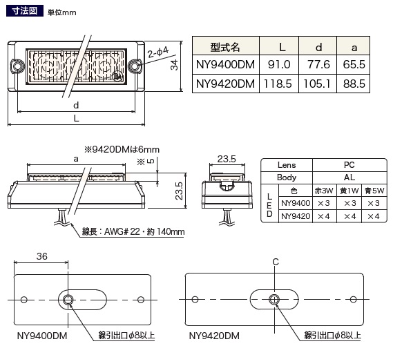 | 仕様 | 発光色:緑 定格電圧:DC12~24V 減光入力:〇 点滅:16パターン 同期:○ 消費電力:4.2~5.7W 質量:0.06kg |