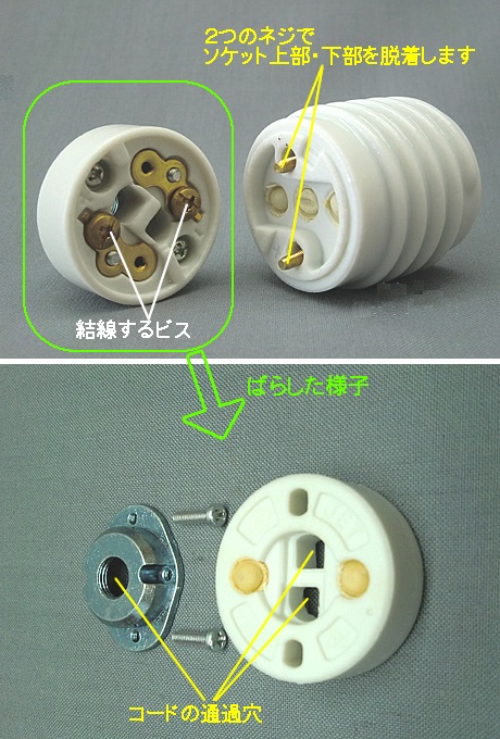 ②ソケット下部:磁器(口金寸法:E26)