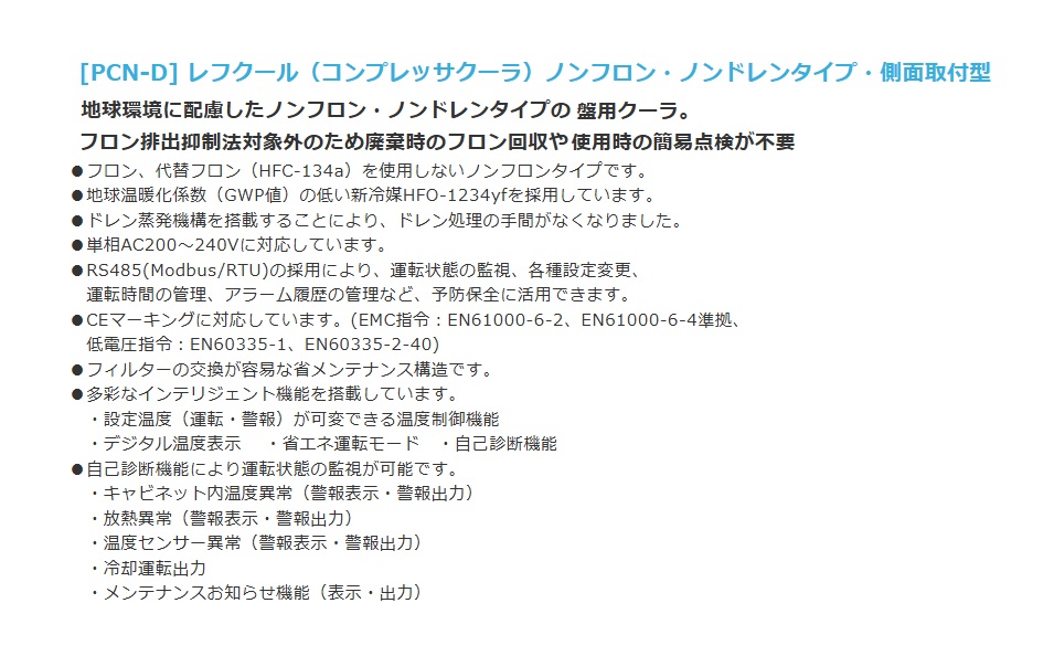 日東工業 PCN-70D-2 レフクール(コンプレッサクーラ)ノンフロン・ノンドレンタイプ・側面取付型