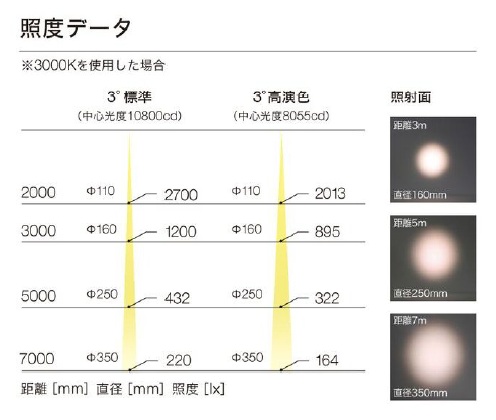 | 仕様 | 光源色:2700K 配光:3° 灯体色:ブラック 定格電圧:AC100V 消費電力:4.7W 本体:PBT/PC、アルミ 発光部:PMMA 製品重量:約400g 演色性:Ra85(標準タイプ) |