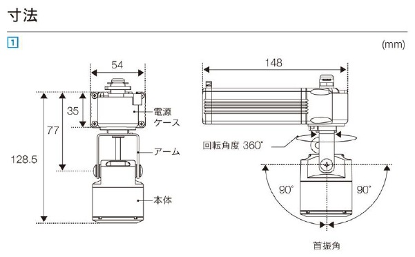 | 仕様 | 光源色:2700K 配光:3° 灯体色:ブラック 定格電圧:AC100V 消費電力:4.7W 本体:PBT/PC、アルミ 発光部:PMMA 製品重量:約400g 演色性:Ra95(高演色タイプ) |