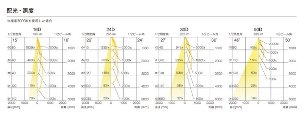 | 仕様 | 光源色:3000K 配光:30° 灯体色:ブラック 定格電圧:AC100V 消費電力:4.5W 製品重量:270g 演色性:Ra93 グレアカットアングル:35° 調光方式:位相調光(0%、約2~100%) (逆位相含む) |