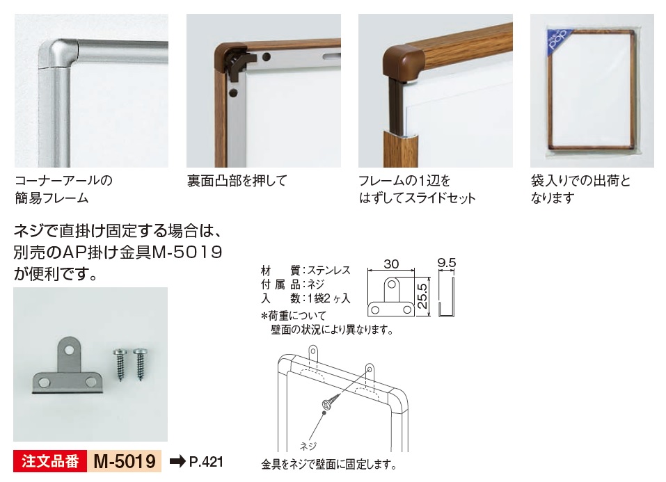M-5019 AP掛け金具 ネジで直掛け固定する場合