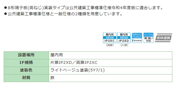 | 仕様 | 端子板対数:10 扉形式:片扉 外形寸法mm:ヨコ250・タテ500・フカサ100 収納機器:両ねじ形端子板×2 適用キャビネット:B10-255 |