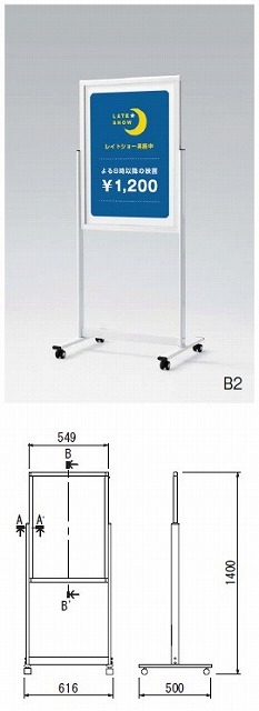 ・シンプルな直立両面ポスタースタンド、コスト的にもお手頃で、施設やオフィス、役所の案内用にもお使いいただけます。