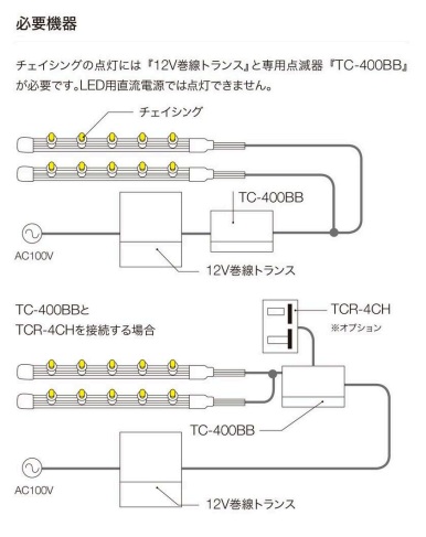 TR-1160N(AC12V160W)…960灯 ※TC-400BBの接続可能灯数で制限されます。