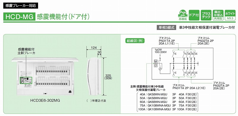 日東工業 HCD3E6-342MG ホーム分電盤 感震機能付(ドア付)