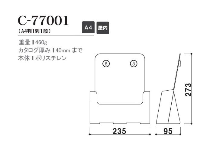 | 仕様 | 【屋内】 樹脂一体タイプ 重量:460g カタログ厚み:40mmまで 本 体:ポリスチレン |