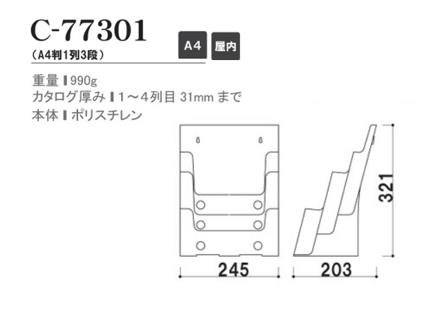 | 仕様 | 【屋内】 樹脂一体タイプ 重量:990g カタログ厚み:1~4列目 31㎜まで 本 体:ポリスチレン |