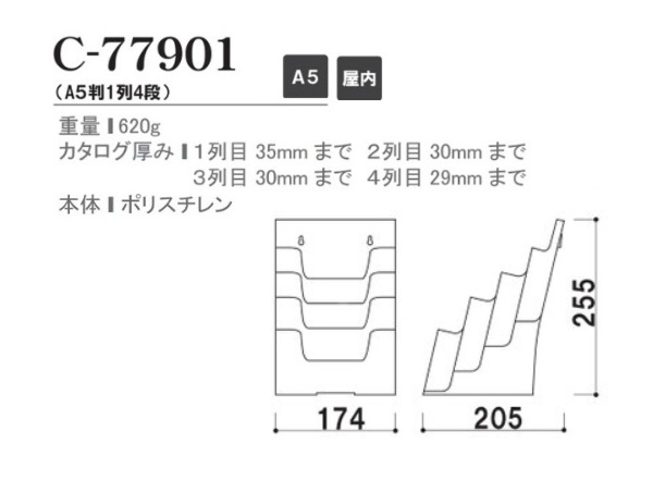 | 仕様 | 【屋内】 重量:620g カタログ厚み:1列目35㎜まで 2列目30㎜まで 3列目30㎜まで 4列目29㎜まで 本 体:ポリスチレン |
