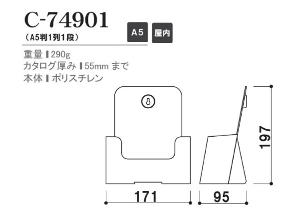 | 仕様 | 【屋内】 樹脂一体タイプ 重量:290g カタログ厚み:55mmまで 本 体:ポリスチレン |