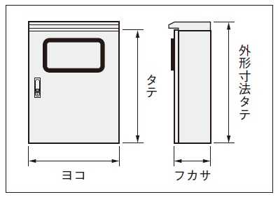 | 仕様 | 寸法mm:ヨコ400・タテ500・フカサ200 外形寸法mm:530 基板寸法mm:ヨコ320・タテ420 窓寸法mm:ヨコ264・タテ145 メーターパネル寸法mm:ヨコ305・タテ156 有効フカサmm:183 質量kg:17.1 |