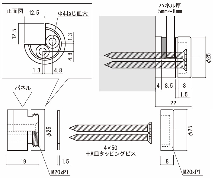| 仕様 | 4個セット 材質:真鍮クロームメッキ 付属品:4×50皿ビス8本・パッキン4個 ズレ止めゴムシール4枚 厚み調整用ゴムシール(t1、t3各4枚) |