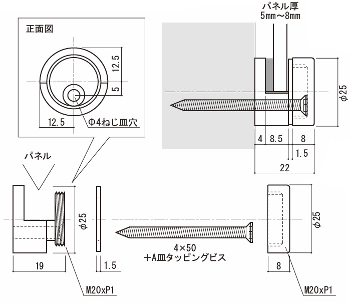 ●パネルに穴をあけず上下で受けて固定し浮かせるタイプ