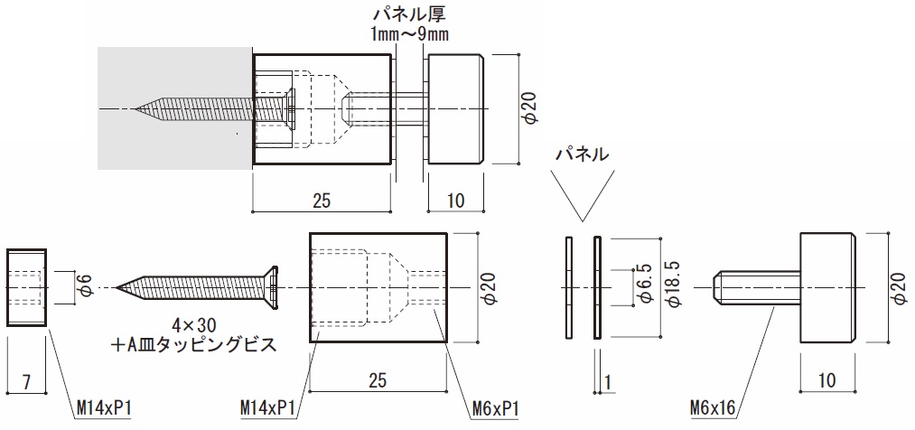 | 仕様 | 4個セット 材質:ステンレスヘアライン仕上 付属品:4×30皿ビス4本・パッキン4個 |