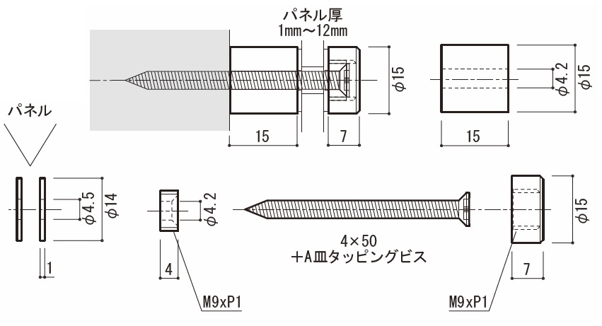 ●タッピングビス1本でパネルから台座、壁面まで通して固定パネルを浮かせるタイプ