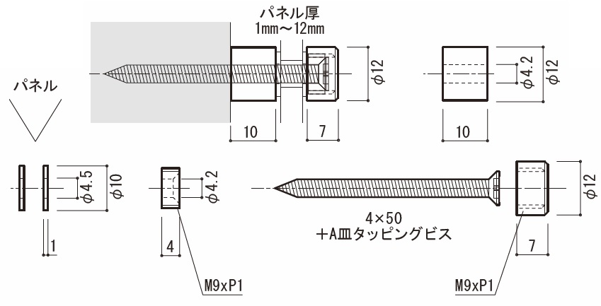 ●タッピングビス1本でパネルから台座、壁面まで通して固定パネルを浮かせるタイプ