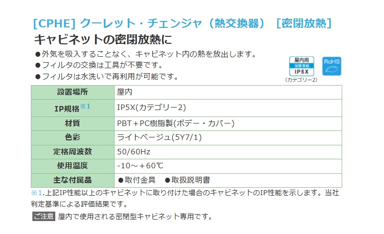 ※当社試験設備での測定によるキャビネット内外の温度差が T=20 [K(℃) ]の時の定格値です。