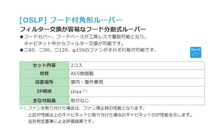 日東工業 OSLP-1A・OSLP-1AC フード付角形ルーバー フィルタ付(2個入)