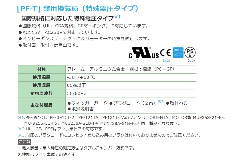 日東工業 PF-121TA 盤用換気扇 特殊電圧タイプ 樹脂羽根ファンシリーズ