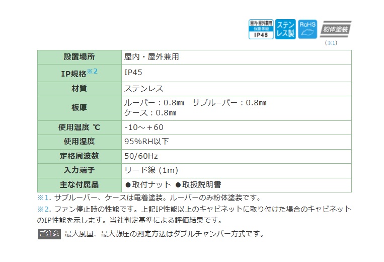 日東工業 SLS-13K-2R・SLS-13K-2RC AC200V 換気扇付ステンレス製ルーバー フィルタ付
