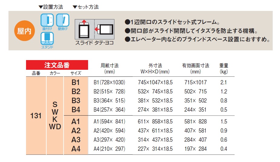 ・壁掛けでのご使用はB2・A2以下でお願いします。