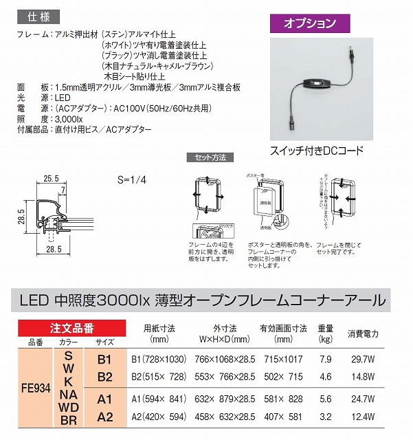 アルモード FE934W A2 ホワイト LED内照パネル カド角 屋内