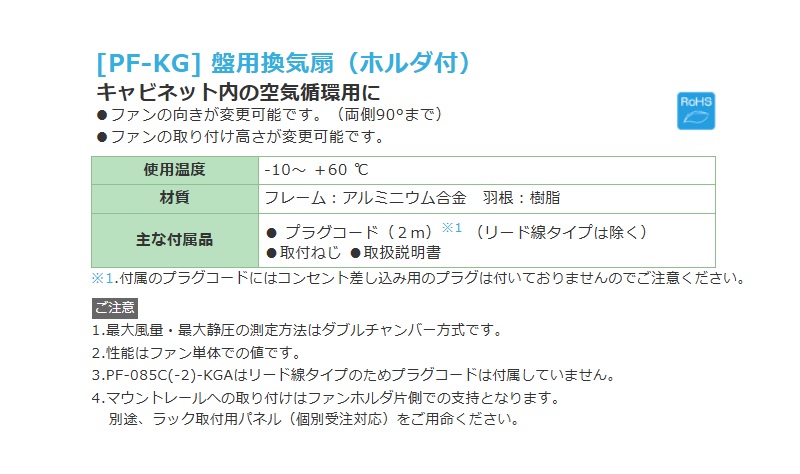 日東工業 PF-121-KG AC100 盤用換気扇(ホルダ付)