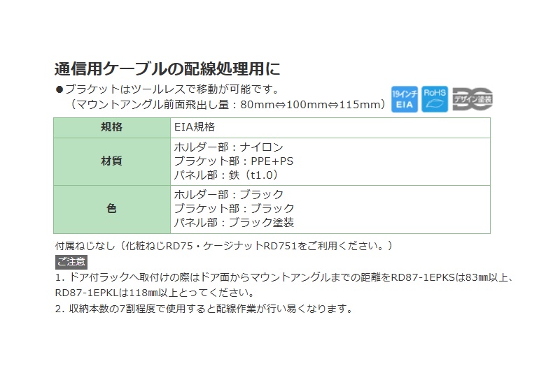 日東工業 RD87-1EPKL ケーブルホルダー付パネル(可動式ブラケット付)